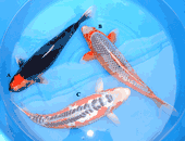 Niigata 30<br> 22" Female Kohaku ($3800) <br> Breeder: MiyaNiigata 31<br> 20" Female Showa ($2400) <br> Breeder: MiyaNiigata 32<br> 18"-20" Female Goshiki ($1600) <br> Breeder: Hiroi