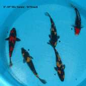 Niigata 1030<br> 13"-16" Ki Utsuri <br>$450/eachNiigata 1031<br> 17" Ginrin Chagoi <br>$600Niigata 1032 <br> 15"-16" Mix Variety <br> $400-$500/each