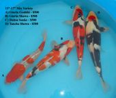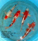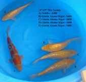Niigata 1249 <br>14"-17" Mix Variety <br>$600-$700/eachNiigata 1250 <br>14"-16" Ginrin Kohaku <br>$400-$450/eachNiigata 1251 <br>10"-12" Mix Goshiki <br>$300-$350/each